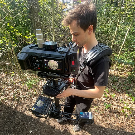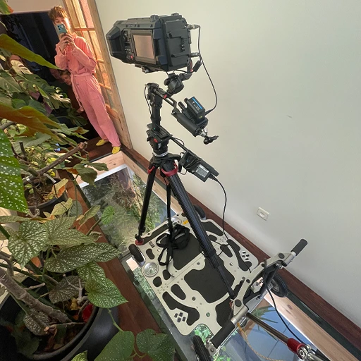 The Steadicam offers an 'organic' feel, ideal for narrative immersion where you want the viewer to feel like a character in the room. This setup provides a more natural camera movement for the URSA Cine Immersive, allowing us to navigate tight spaces that would be inaccessible with larger rigs.